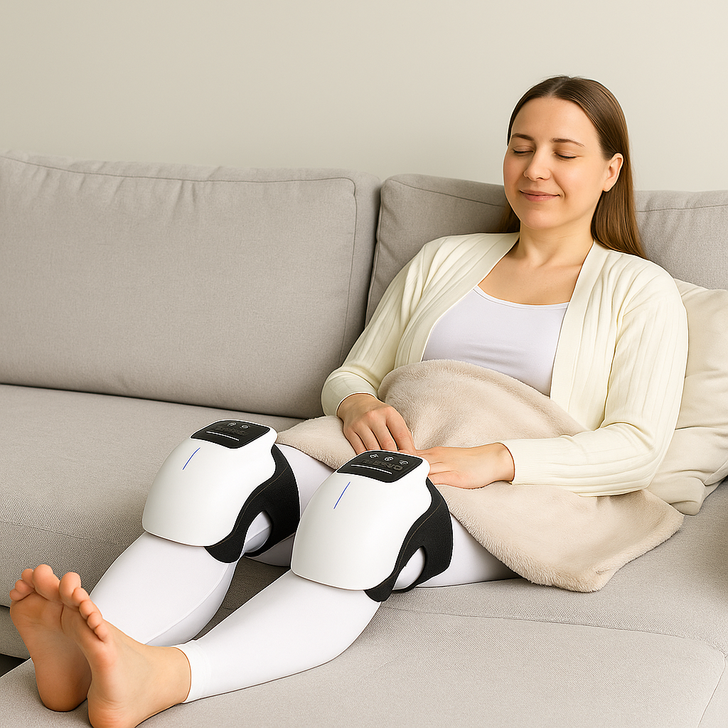 Découvrez un massage combinant chaleur et vibrations pour détendre, soulager vos genoux et améliorer votre confort au quotidien avce le masseur Veluna™.